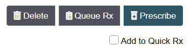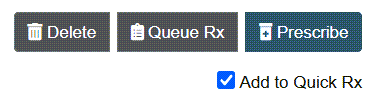 - Queue Rx button: Click the Queue Rx button to save and add the prescription to the Pending Rx list, under Tasks, instead of transmitting it to the pharmacy.