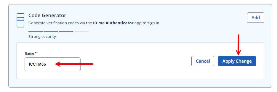 1. Select the Add button on the right side of the MFA / 2FA option that is no longer working.