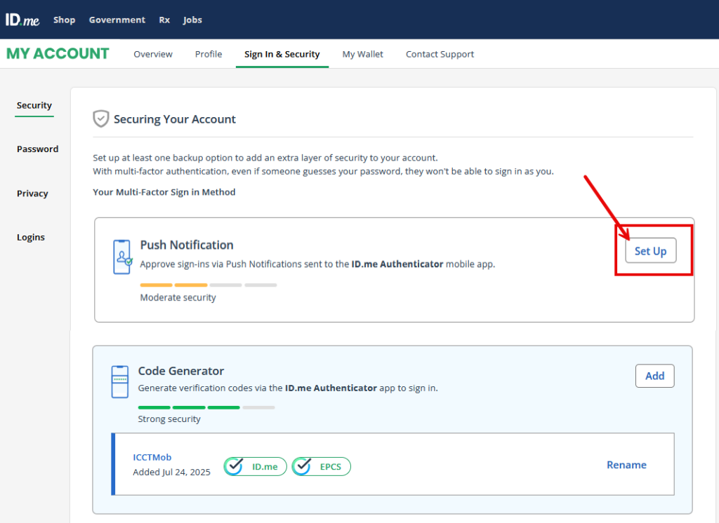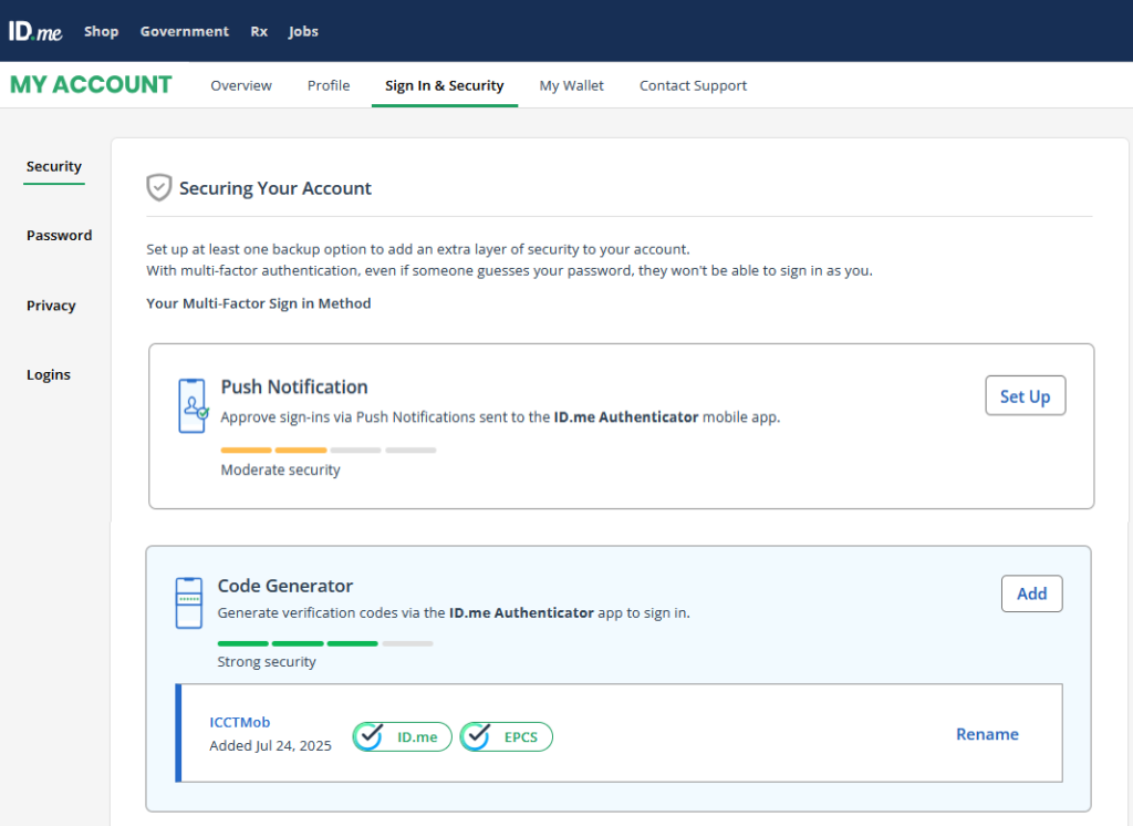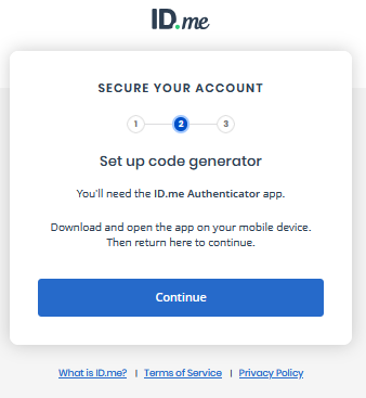 - If have the ID.me Authenticator app installed, it will direct you through the remaining steps to enable.