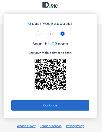 - Once you have the ID.me Authenticator app installed, scan the QR Code again, it will direct you through the remaining steps to enable.