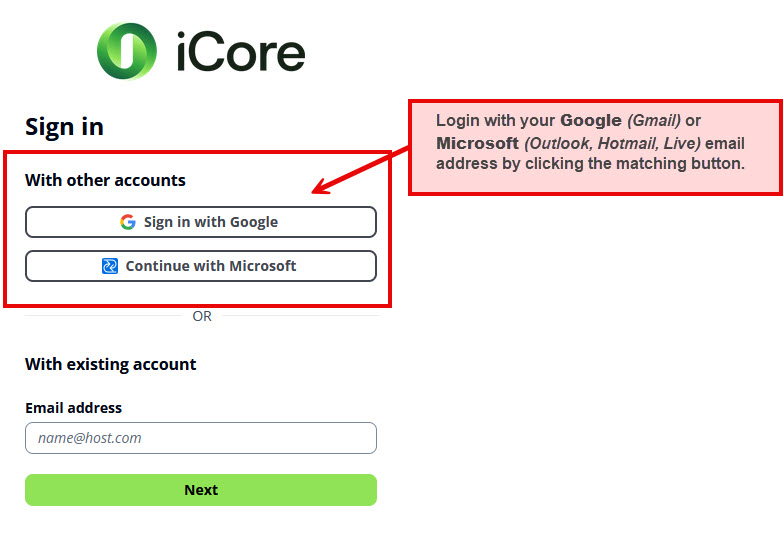 2. Sign in with Google or Microsoft by clicking the button matching your email address